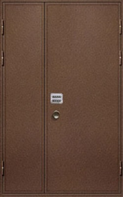 Гнуто-сварные утеплённые двери для подъезда имеют от двух до пяти противосъемных штырей. При закрытой двери штыри входят в отверстия коробки со стороны крепления петель на глубину до 25 мм.